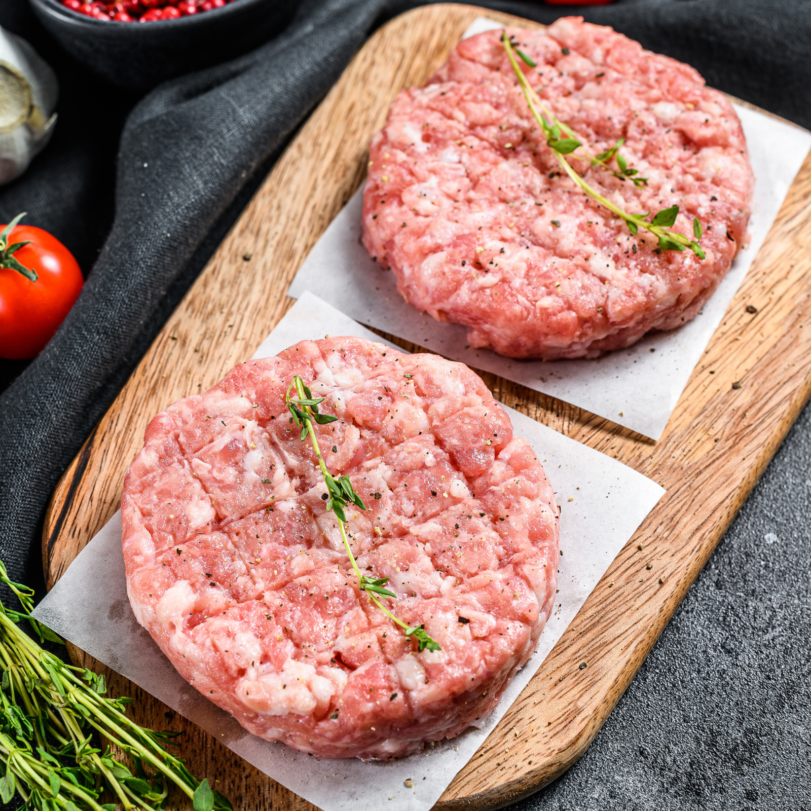 Pork Patty is homemade with pork and infused with a hint of garlic & cream powder. It is flavourful and succulent with no artificial flavours.